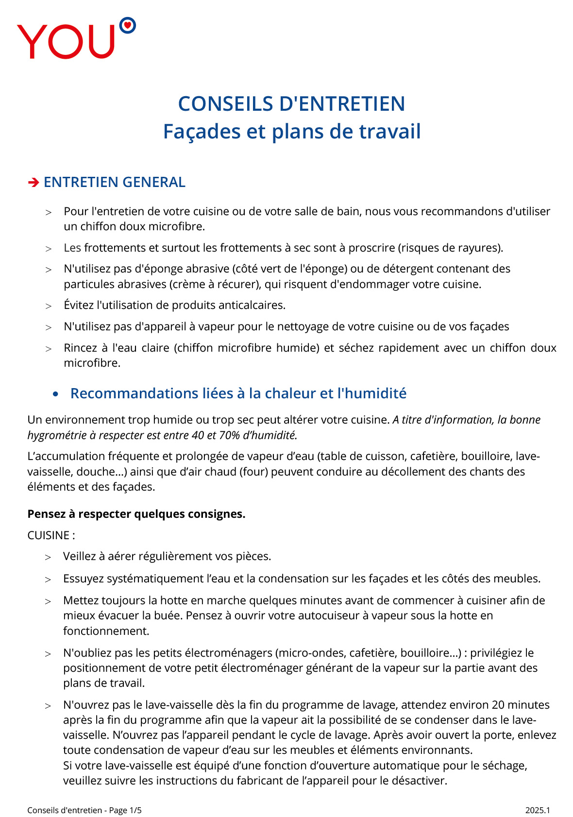VOUS AVEZ MAINTENANT UNE BELLE CUISINE MAIS … pour qu’elle dure dans le temps n’oubliez pas que vous devez :